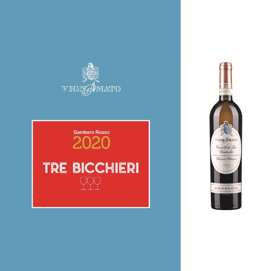 Il premio “Tre bicchieri” della guida italiana Gambero Rosso 2020 è stato assegnato al nostro Ambrosia Castelli di Jesi Verdicchio Riserva Classico 2016 DOCG.